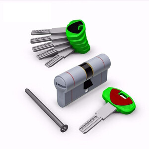 Cilindro di alta sicurezza con sistema di cifratura meccanico a 11 perni attivi a doppia funzione frizionato. incluso 1 chiave da cantiere con inserito rosso + 5 chiavi colorate,1 vite M5X70mm, 1 security card. Versione modulare Evok22 Top con barra in acciaio inox 6 mm. Spine anti-trapano, presenti nello statore e nel rotore. PIN UNICO anti-bump. Sistema con chiave da cantiere. Chiavi in ottone. Cam DIN 30 . Finitura cromo satinata. Carta di propriet numerata. Chiave con profilo brevettato duplicabile presso i centri autorizzati.