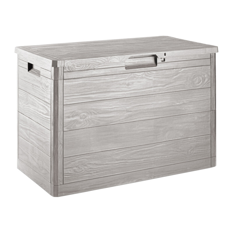 baule multibox. Capacit 160 L.Predisposizione per chiusura con lucchetto.Dimensioni cm 77,5×44,5×52,7h.Finitura effetto legno.Colore antracite